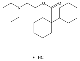 [1,1’-Bicyclohexyl]-1-carboxylic acid, 2-(diethylamino)ethyl ester, hydrochloride (1:1); [1,1‘’-Bicyclohexyl]-1-carboxylic acid, 2-(diethylamino)ethyl ester, hydrochloride (9CI); [Bicyclohexyl]-1-carboxylic acid, 2-(diethylamino)ethyl ester hydrochloride (6CI,7CI,8CI); Atumin; Benacol; Bentomine; Bentyl hydrochloride; Di-Syntramine; Dicyclomine hydrochloride; Dicycloverin hydrochloride; Dicycloverine hydrochloride; Diocyl hydrochloride; Dyspas; Mamiesan; Merbentyl; Procyclomin; Wyovin hydrochloride; β-Diethylaminoethyl 1-cyclohexylcyclohexanecarboxylate hydrochloride